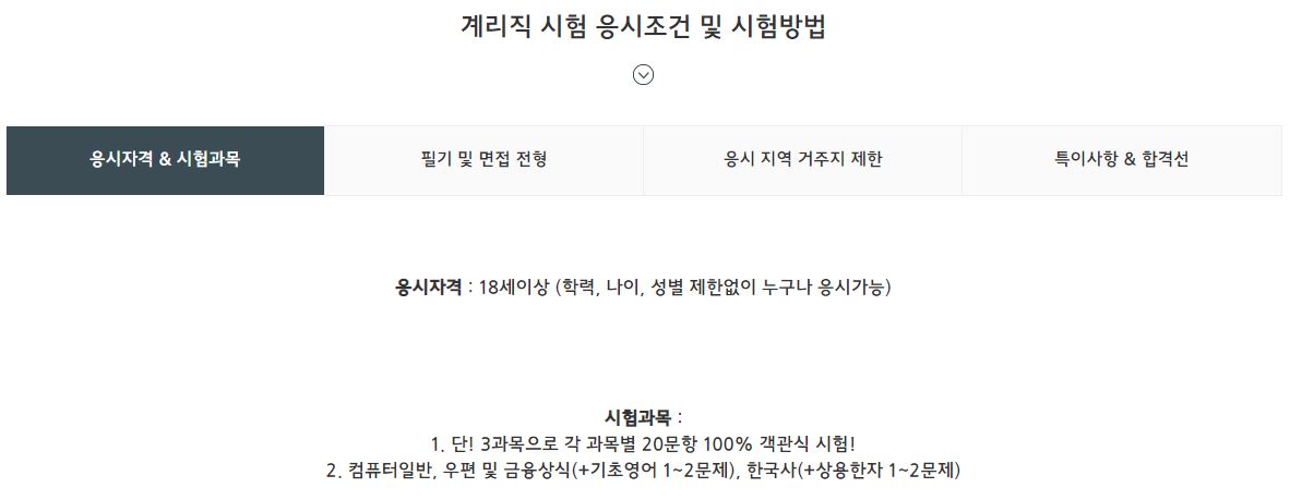 계리직 공무원은 우정산업본부의 우정직 공무원으로 만 18세 이상이면 별다른 지원요건의 제한이 없이 응시자격이 주어집니다. 2013년 공무원 초기 기능직 10급 계급이 사라지면서 9급 채용으로 변경 되었습니다.