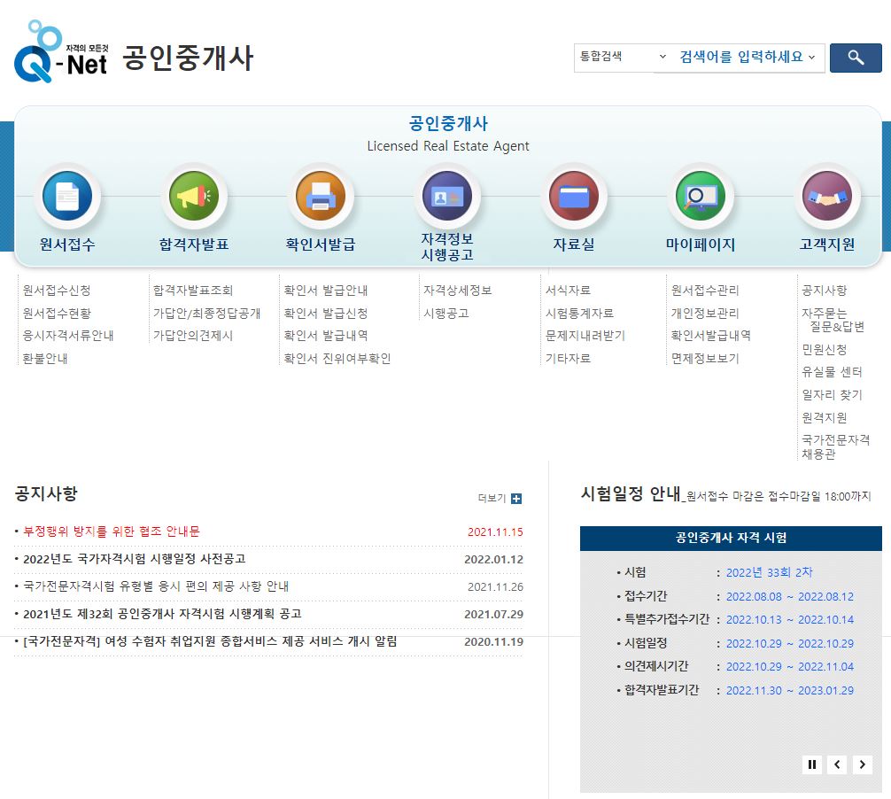 2022년 제 33회 공인중개사 시험일정 및 응시수수료
