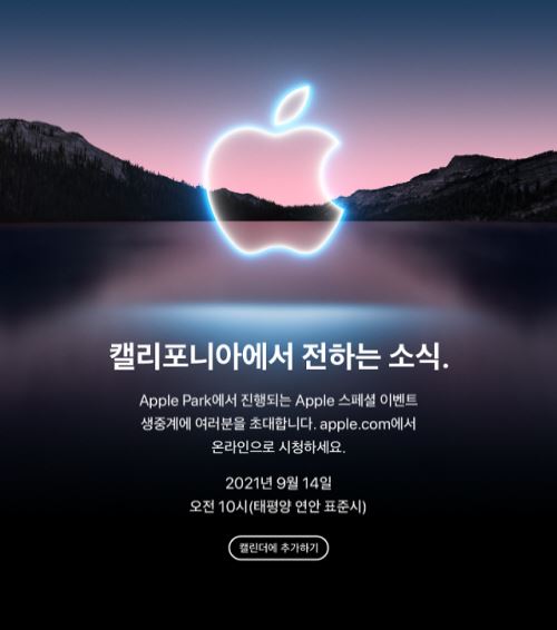 애플이 돌아오는 2021년 9월 14일 화요일 키노트 행사를 진행한다고 공식적으로 공개하였습니다. 애플은 홈페이지와 이메일 등으로 2021년 9월 7일 '캘리포니아에서 전하는 소식.'이라는 애플 이벤트 AR 초대장을 발부하였습니다.