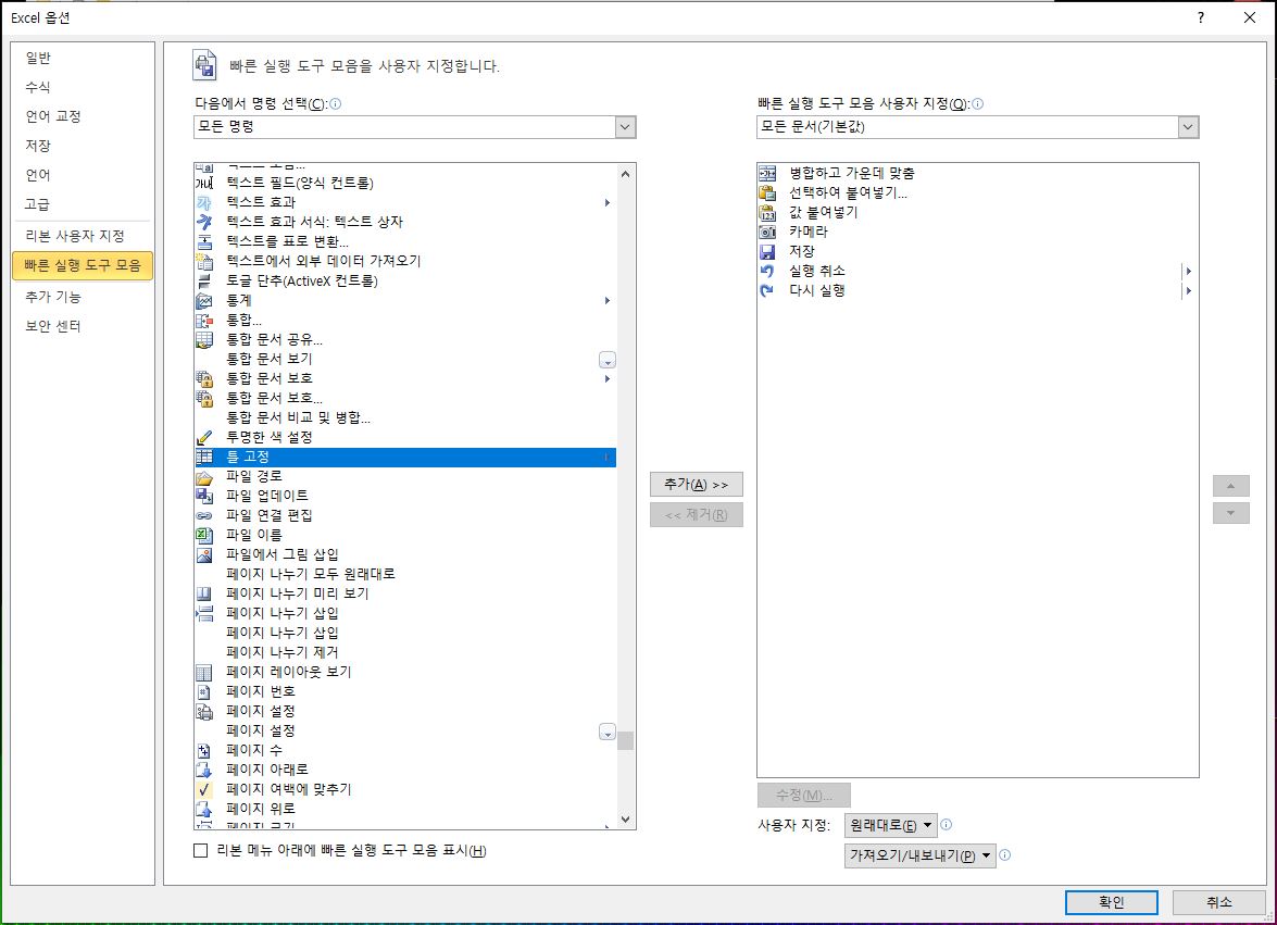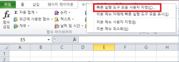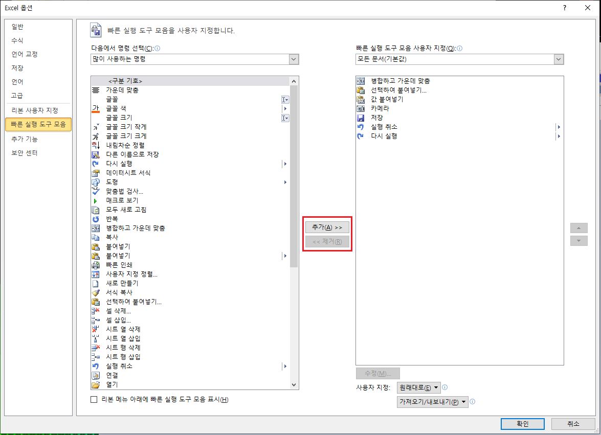 2. 엑셀 빠른 실행 도구 모음 편집하기