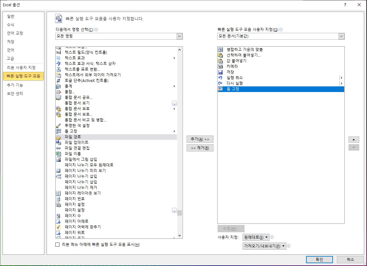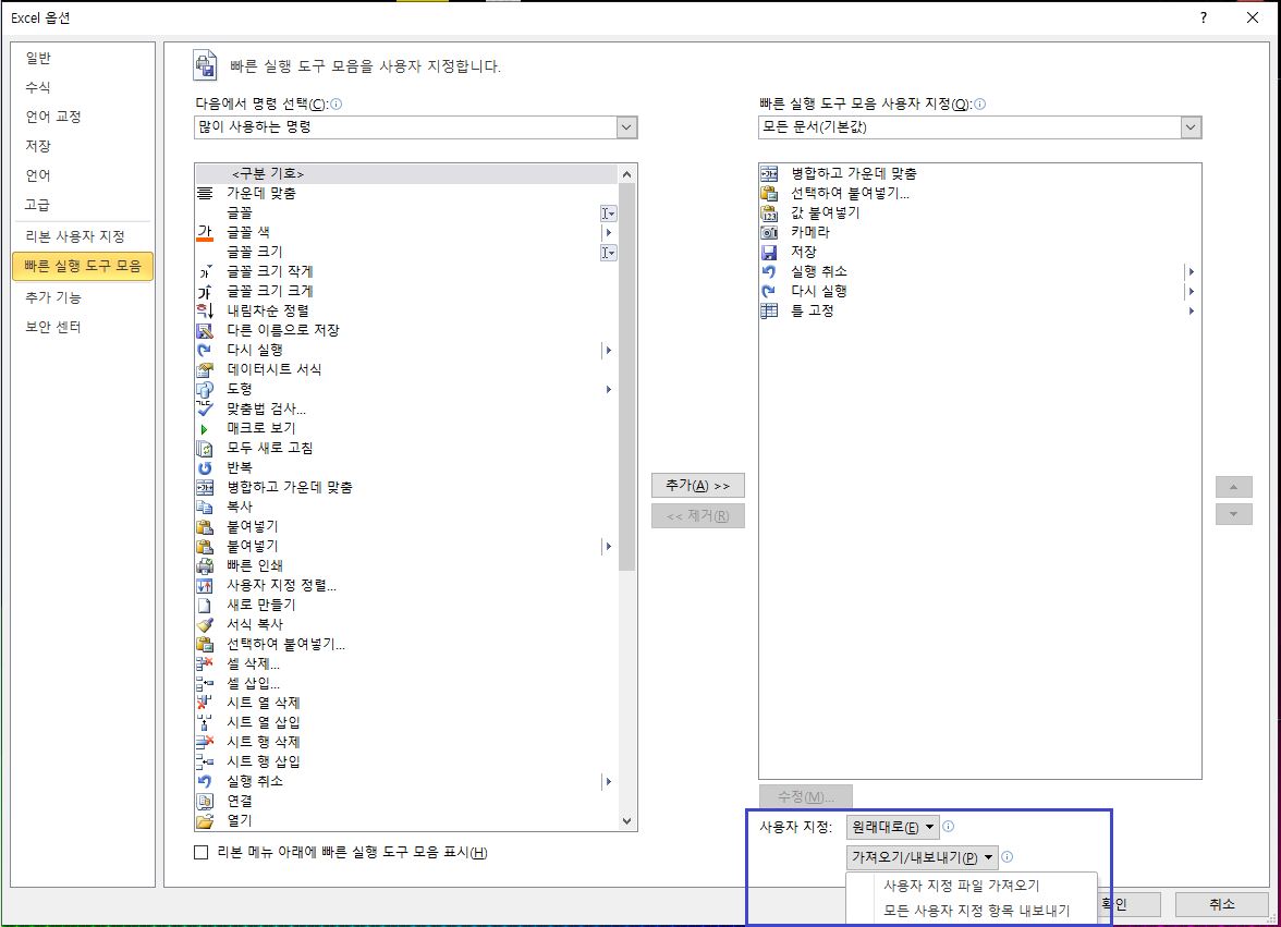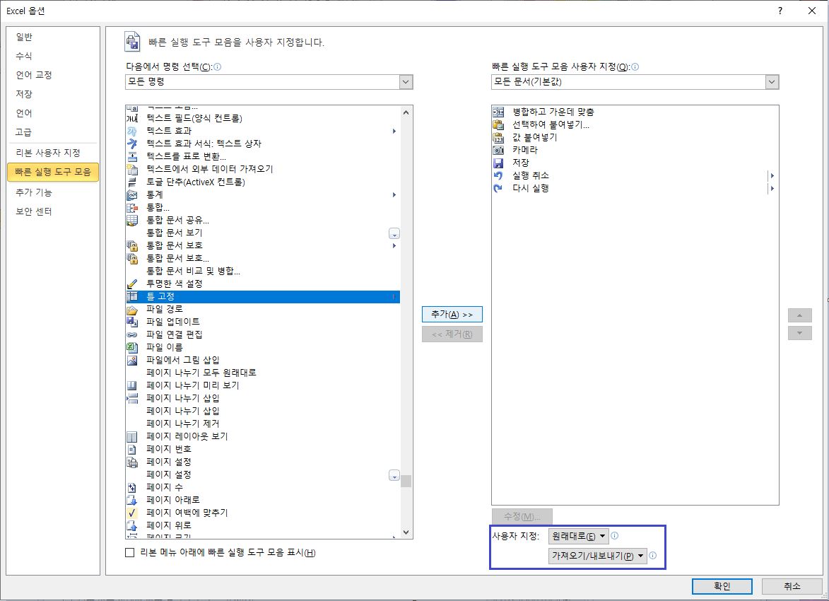3. 엑셀 빠른 실행 도구 모음 가져오기/내보내기
