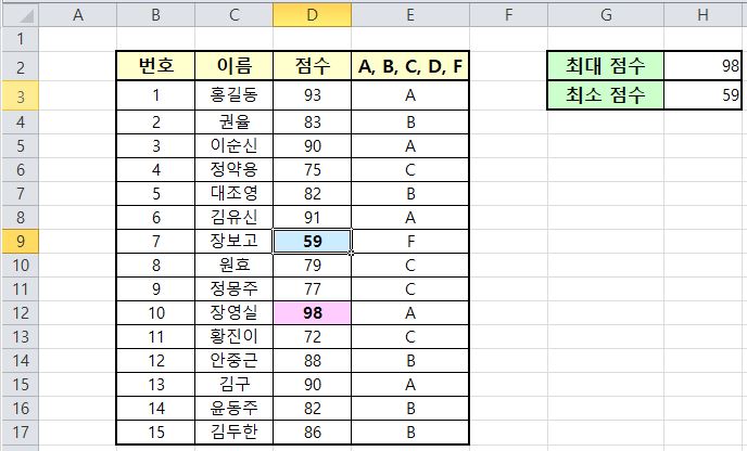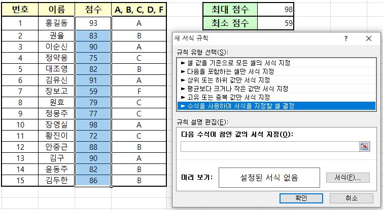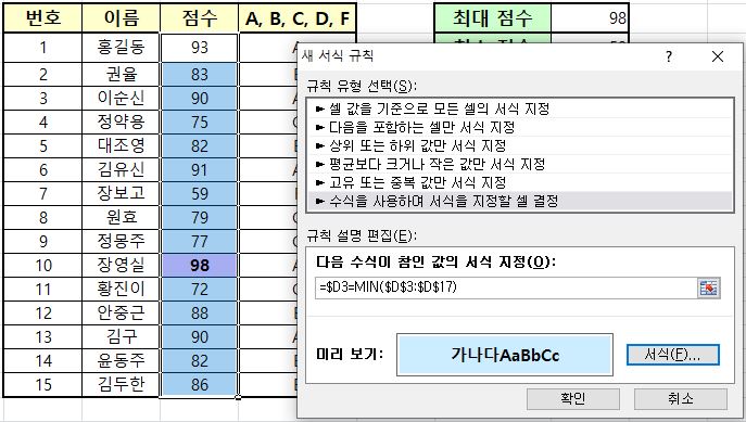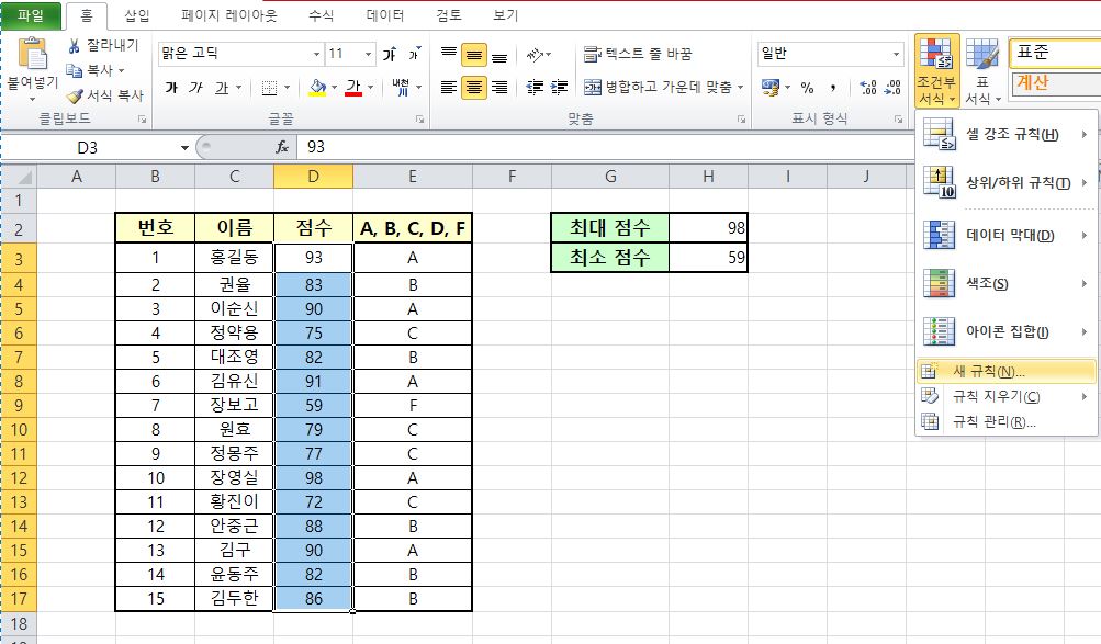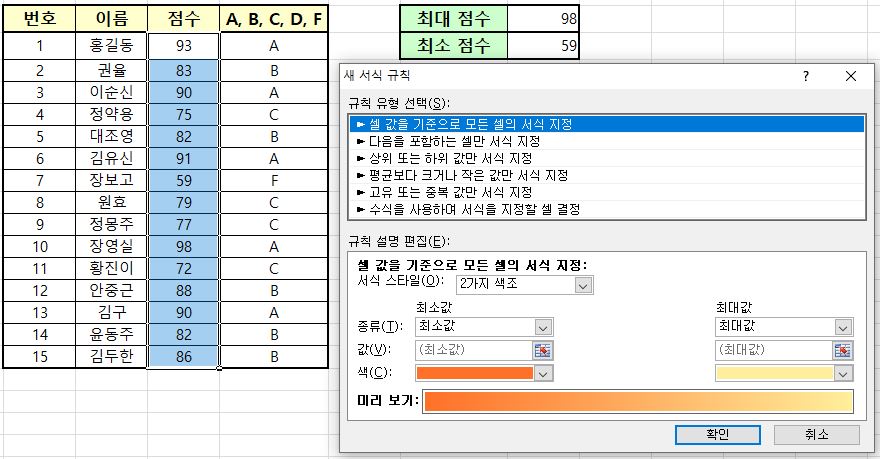 3. 엑셀 최대값 최소값 색으로 표시하기