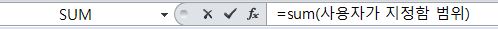 첫 번째, SUM 엑셀 함수는 사용자가 지정한 범위에 있는 인수의 합을 구하는 엑셀 수식으로 형식은 '=SUM(사용자가 지정한 범위)'로 구성되어 있습니다. 사용법은 SUM 엑셀 함수 형식 그대로 범위만을 지정해 준다면 바로 결과값이 나오는 형태입니다.
