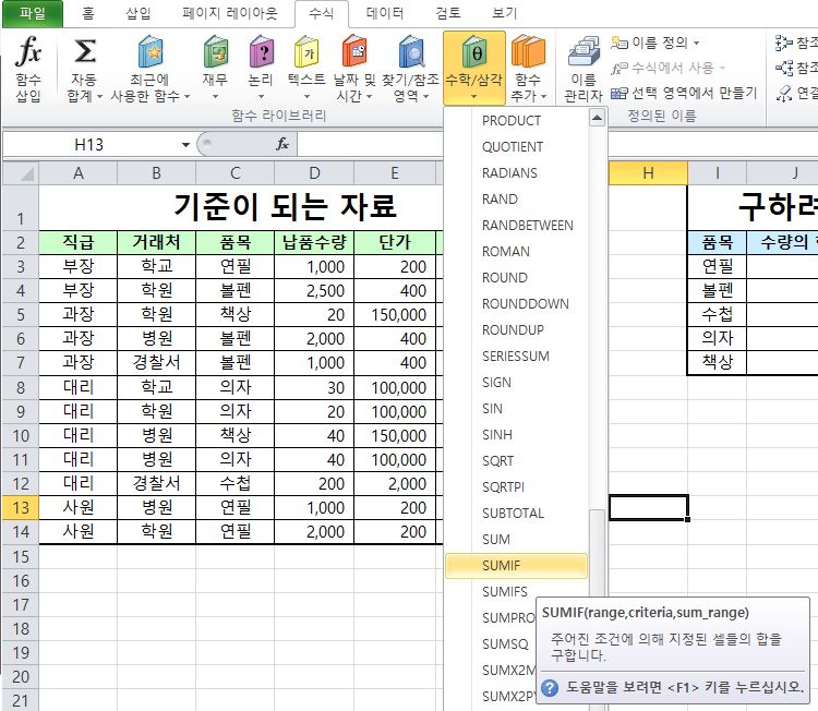 "실무 Excel 더하기 계열 엑셀 함수 정리 SUM, SUMIF, SUMIFS"