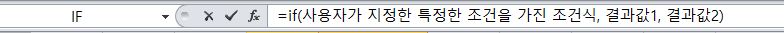 IF 엑셀 함수는 사용자가 특정한 조건을 설정하고 그 조건에 맞는 결과값을 산출해주는 수식 함수입니다. IF 함수 형식는 '=IF(사용자가 지정한 특정한 조건을 가진 조건식, 결과값1, 결과값2)'로 구성되어 있습니다. 그리고 다른 수식들과 조합하여 SUMIF, COUNTIF 등의 형태로 사용되기도 합니다.