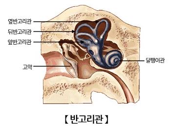 이석증 원인으로는 귓속 깊은 곳 중이에 위치하고 있는 반고리관이라는 기관에 있습니다. 반고리관은 세 개의 반원이 서로 연결되어 있는 관으로, 몸의 평형과 속도의 변화를 감지해주는 역할을 하는 기관입니다. 우리 몸이 서서 걸어다닐 수 있고, 뛸 수 있고, 생활하는데 중요한 역할을 해주고 있습니다.