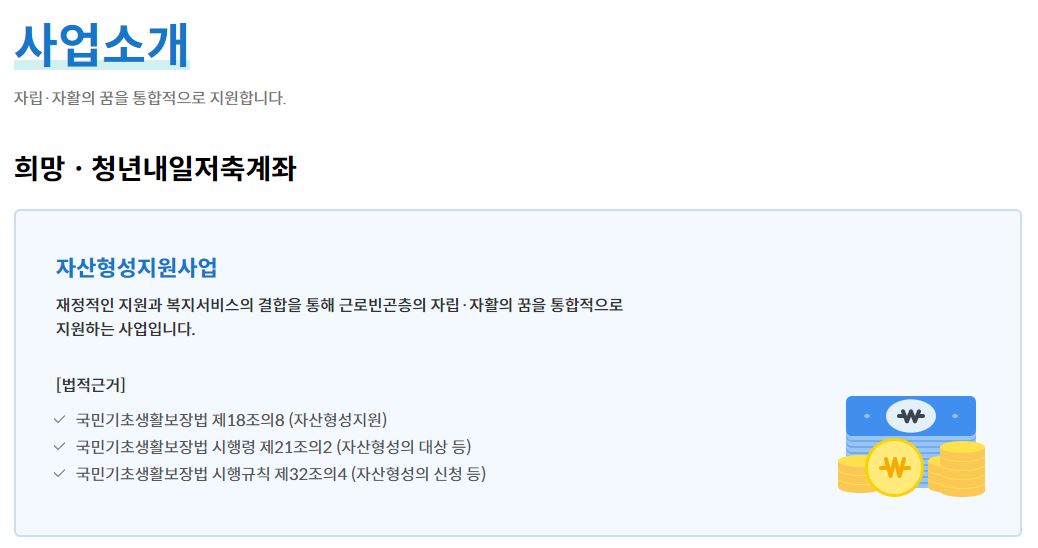 청년 내일저축계좌 정부사업은 경제적으로 어려운 청년들이 사회생활에 적응하고 출발 할 수 있도록 재정적인 지원과 복지서비스가 합쳐진 정부지원사업입니다. 이전의 보건복지부 정부지원사업은 기초생활수급자, 차상위계층 청년들에게만 지원했지만, 이번 청년 내일저축계좌는 지원대상의 폭이 보다 넓어졌다고 합니다.