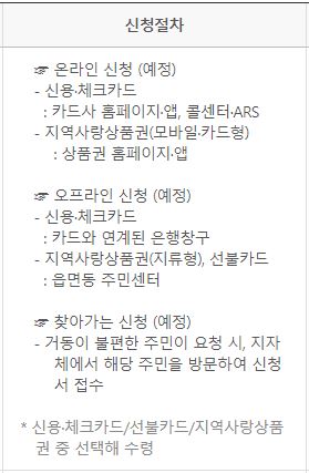 5차 재난지원금 - 코로나 상생 국민지원금 신청시기는 2021년 8월 30일부터로 예정되어 있습니다. 신청방법은 온라인 신청, 오프라인 신청 그리고 찾아가는 신청으로 나누어집니다. 수령방법은 신용카드, 체크카드, 지영사랑상품권 중에서 선택하여 수령하실 수 있습니다.