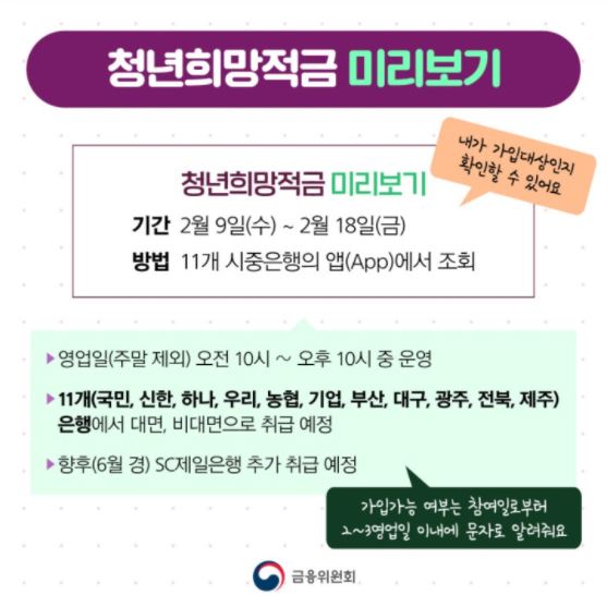 2022년 청년희망적금 신청은 각 지자체에서 운영중인 청년지원 시스템 등의 사이트가 열릴 예정이고, 2022년 2월 21일 월요일부터 지정된 11개의 은행을 통해 청년희망적금을 신청할 수 있습니다.