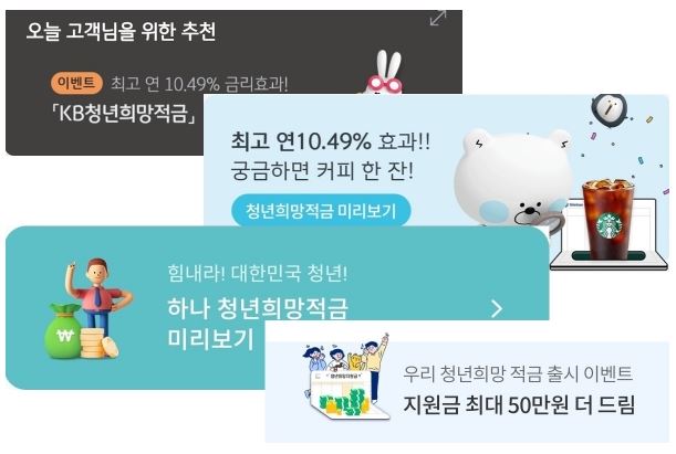 개인적으로 물가상승률 대비 직장인들의 수익은 턱없이 모자르다고 생각하고, 무엇보다 그 차이가 점점 벌어지고 있다고 생각합니다. 그렇기에 이번에 정부에서 실시하는 청년희망적금 금융상품 제도는 대한민국 청년들에게 조금이나마, 희망을 보여줄 수 있는 상품이라고 생각합니다.