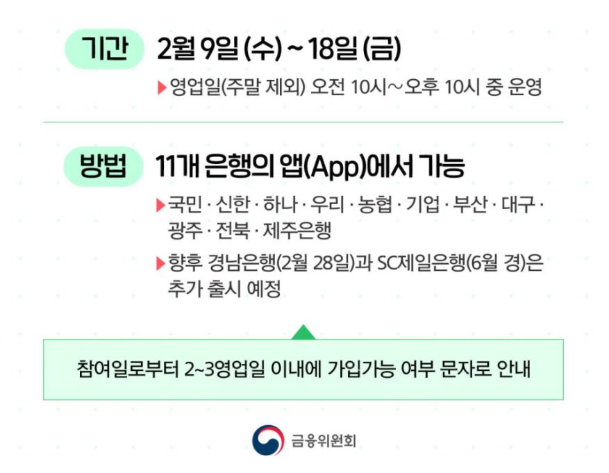 실제로 금융위원회 관계자의 말에 따르면 "청년희망적금은 정부 예산에서 저축장려금을 지원하는 상품으로, 가입신청순서에 따라 운영될 예정"이라며 "예산규모 등을 고려해 가입 접수가 종료될 수 있어 가입 희망자들은 빠른 시일 내 가입하는 게 유리하다."고 발혔습니다.